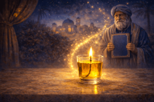 Когда Моше помазал Аарона маслом помазания, дабы освятить его как первосвященника, Аарон затрепетал и упал навзничь. Две капли масла скатились с его лба на бороду — одна слева, другая — справа, переливаясь, словно жемчужины.