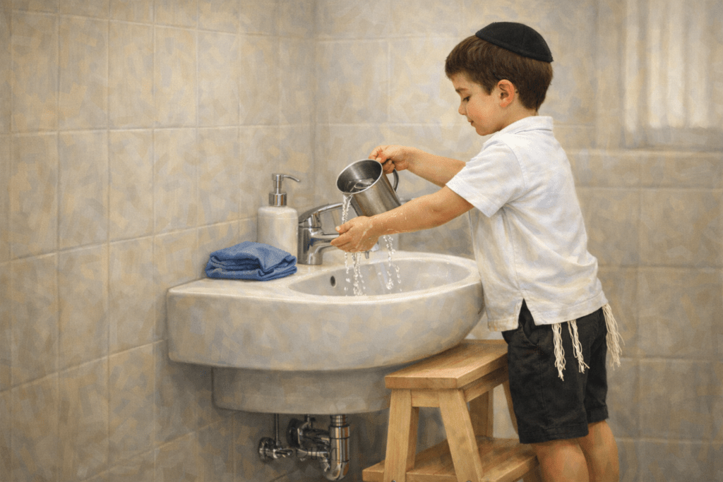 «Вставая по утрам, нужно омыть руки водой из сосуда: сначала правую, держа сосуд в левой, чтобы воцарить правое над левым и дурное побуждение утратило свое господство». (Зоар, гл. Микец, стр. 198)