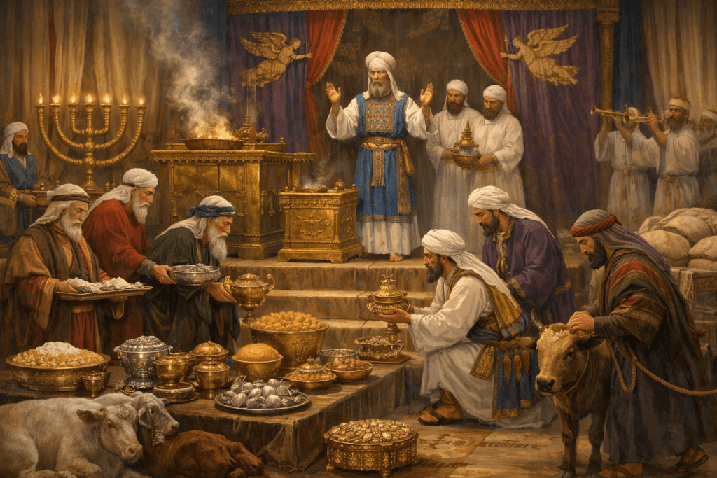 В Парашат Насо перечисляется порядок жертвоприношений каждым коленом.